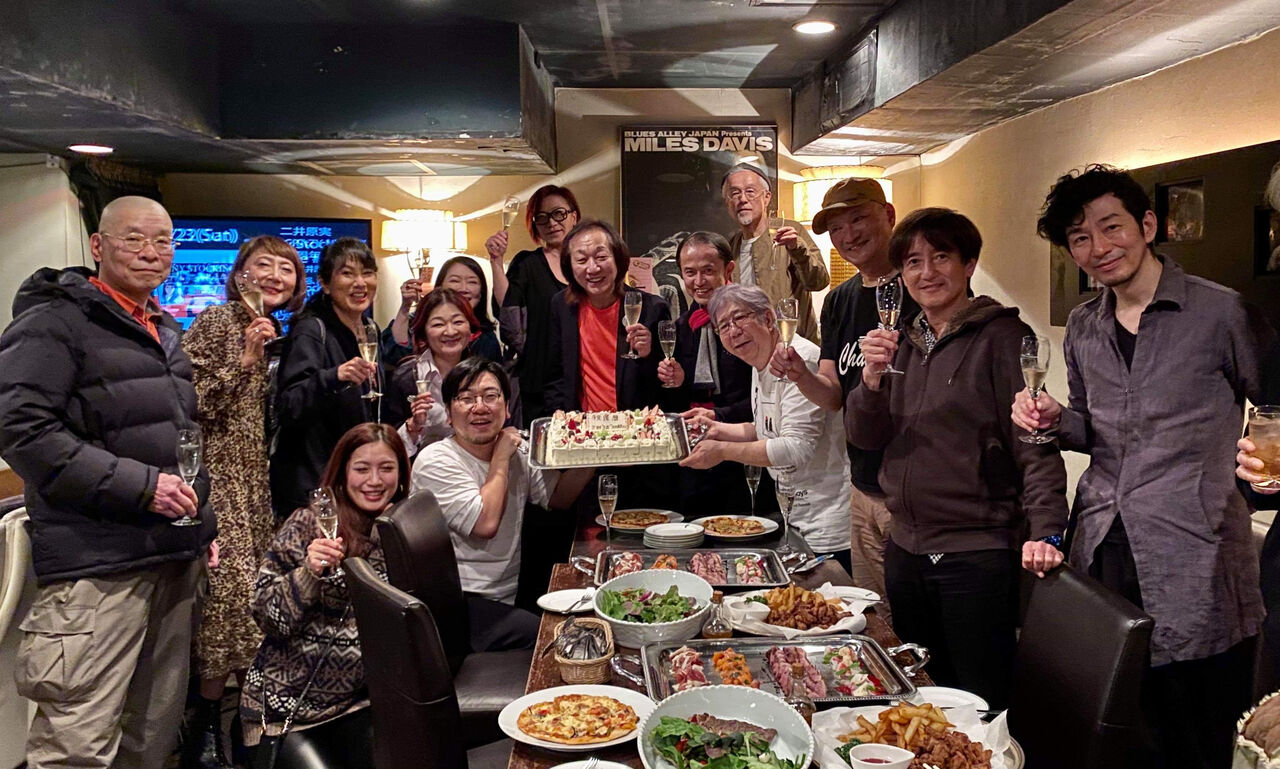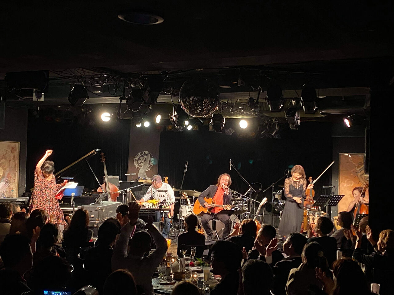 お店のご厚意でアンコール中に突如バースデーケーキがステージへ。すかさず客席に降りて写真を撮る国府弘子嬢。